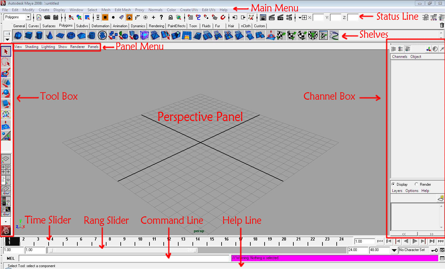 Animation/ Polygons/ NURBS/ Deform/ Dynamics/ Rendering